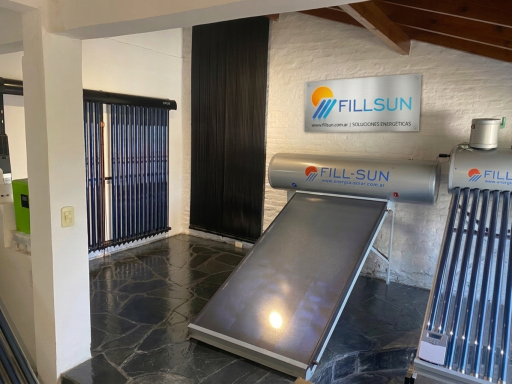 En el showroom podés conocer distintos equipos y soluciones vinculadas a energía solar, como termotanques solares, colectores, paneles y otros componentes del sistema.